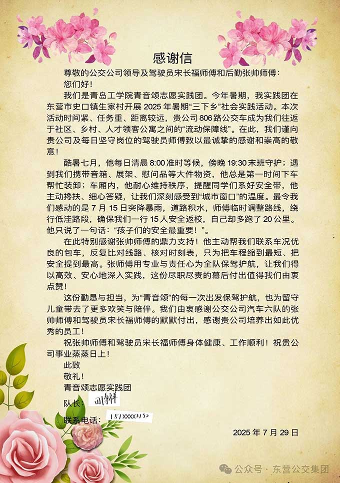 圓夢高考|“你們?nèi)σ愿埃覀內(nèi)套o航!”為保障高考期間交通順暢有序,東營市公交集團以高度的責(zé)任感提前布局、周密安排,傾力打造安全、高效的送考保障體系,誓為全市考生鋪就一條平安赴考的坦途。市公交集團選拔駕駛經(jīng)驗豐富且服務(wù)意識突出的優(yōu)秀駕駛員...[查看更多>>]